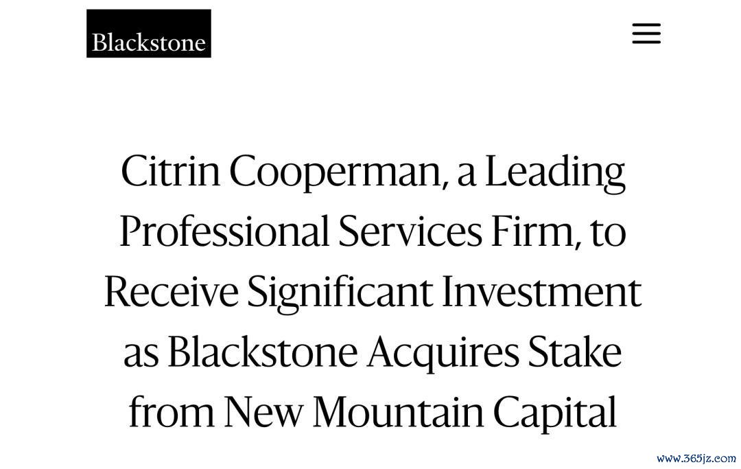 1月7日,黑石集团宣布收购会计及咨询公司Citrin Cooperman的多数股权。这笔交易对该公司估值超过20亿美元(约合146亿元人民币)。